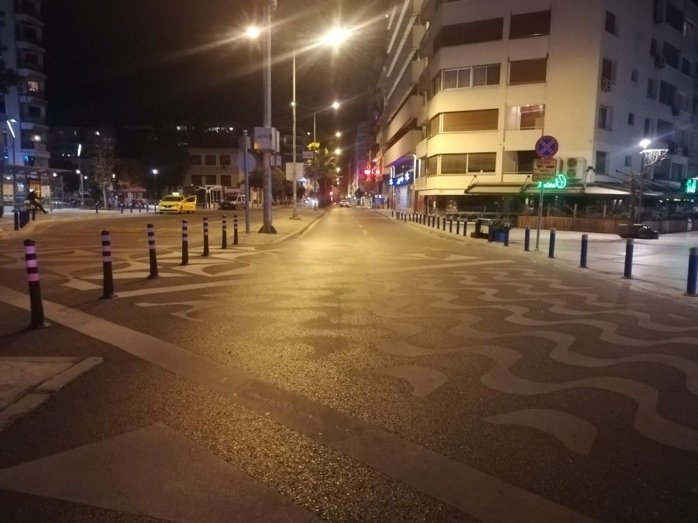 Korona virüs (Covid-19) salgını tedbirleri kapsamında cumartesi ve pazar günlerinin tamamını kapsayan sokağa çıkma kısıtlaması tüm yurtta olduğu gibi İzmir'de de saat 21.00 itibari ile başladı. Kısıtlama pazartesi saat 05.00'te sona erecek