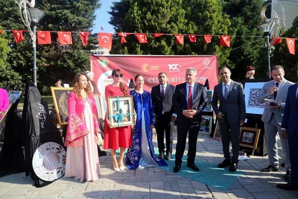 İZMİR Milli Eğitim Müdürlüğü bünyesindeki 30 ilçe halk eğitimi merkezi Cumhuriyet'in 100'üncü yılı etkinlikleri kapsamında Konak Meydanı'nda karma bir sergi düzenledi. İzmir Valisi Süleyman Elban, "Sergiyi ziyaret edecek İzmirli hemşerilerimizin bu eserlerden çok etkileneceğini düşünüyorum" dedi.