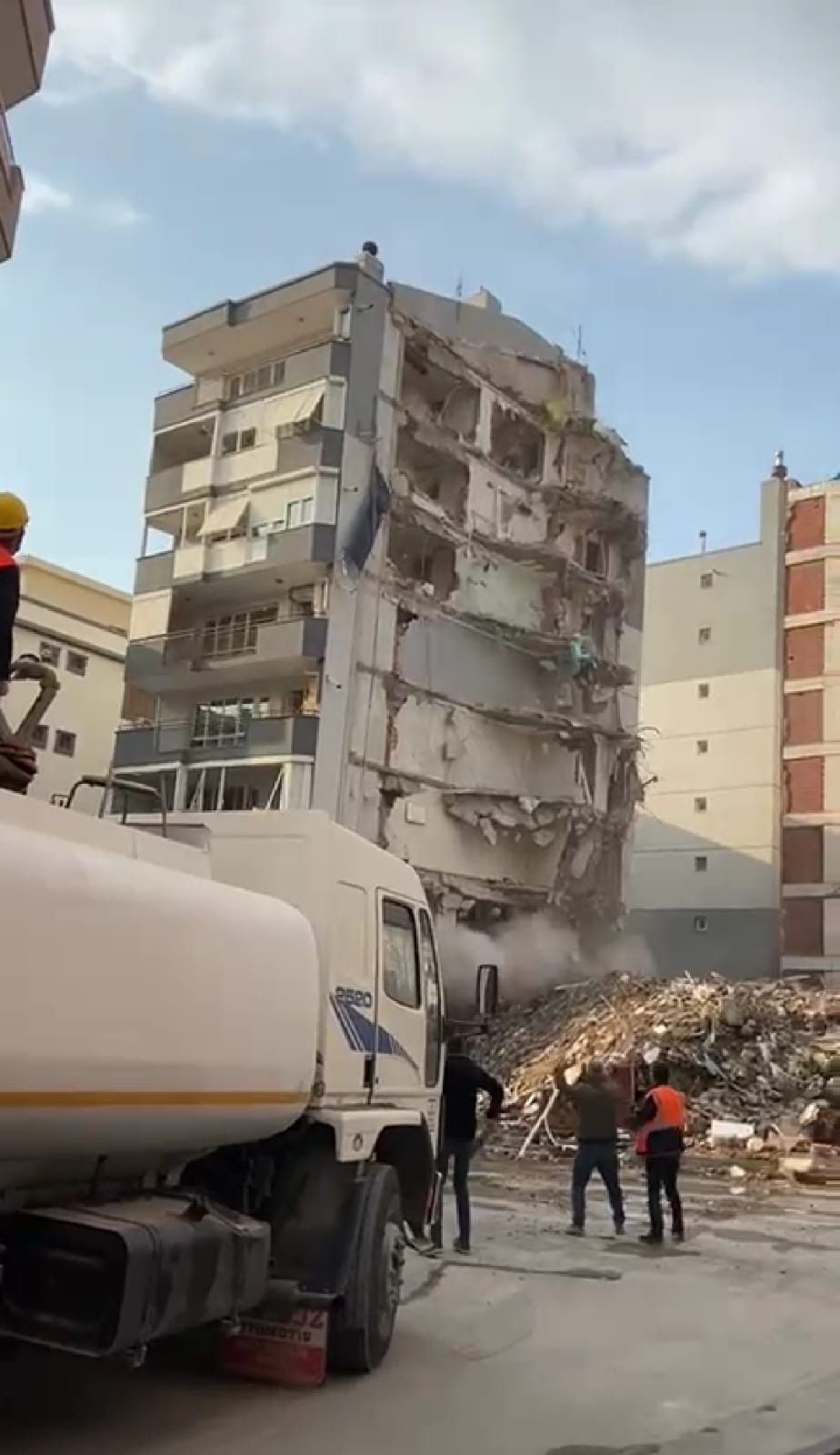 İzmir'de 30 Ekim 2020'de meydana gelen 6,6 büyüklüğündeki depremin ardından ağır hasarlı olduğu için yıkım kararı verilen 8 katlı bina, çalışmalar sırasında büyük bir gürültüyle çöktü. Çöken bina yan taraftaki 4 katlı binaya ağır hasar verirken, çökme anı bir vatandaşın cep telefonu kamerasına yansıdı.