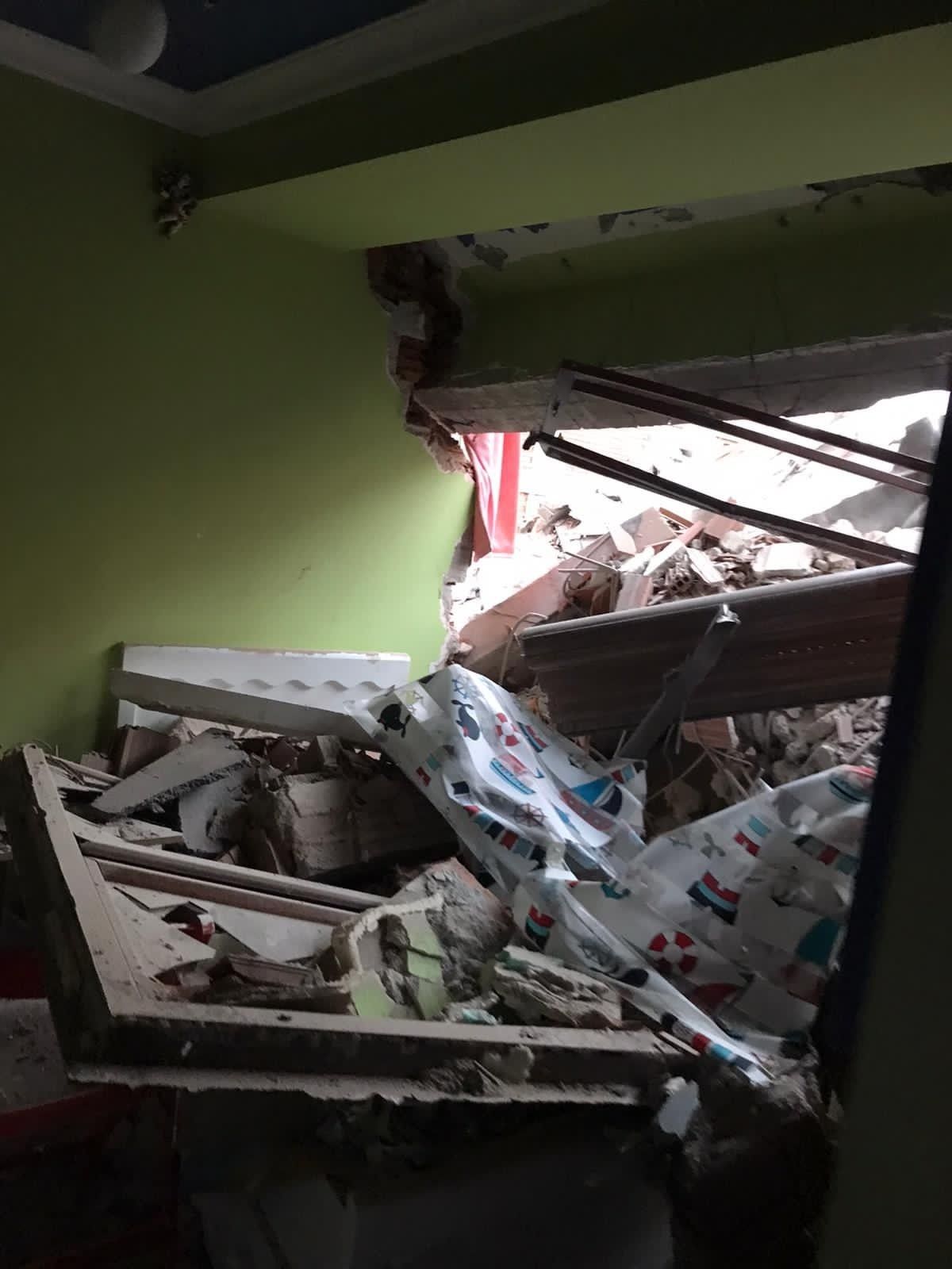 "Ondan sonra bina biraz indi, öbür taraf devrilince zaten toz dumana karıştı. Koşarak diğer tarafa gittik ama ev zaten gitmişti. Şu an evimize gelerek özel eşyalarımızı aldık. Çocuklarımın odası hemen hemen yok durumda. Banyomuz da zarar gördü. Su boruları patladığı için de evimiz su içinde kaldı. Evin hali içler acısı."