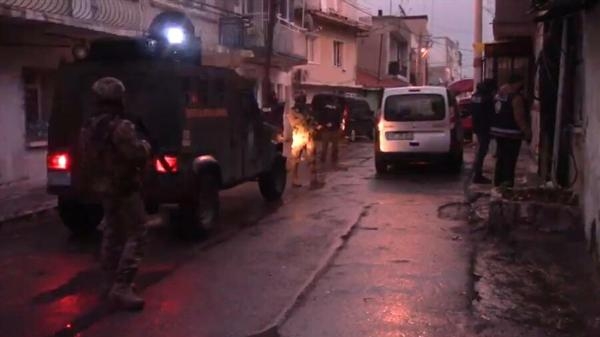 İzmir Emniyet Müdürlüğü Asayiş Şubesi ekipleri, haklarında kesinleşmiş hapis cezası bulunan ve farklı suçlardan aranmaları olan şüphelilere yönelik operasyon düzenledi. Helikopter destekli operasyonda özel harekat polislerinin yanı sıra 53 ekipten oluşan 135 polis görev yaptı. Operasyon kapsamında 'hırsızlık', 'kasten adam öldürme', 'yaralama', 'yağma', 'nitelikli cinsel saldırı', 'uyuşturucu ticareti yapma ve uyuşturucu bulundurma', 'kişiyi hürriyetinden yoksun kılma' ile 'silahla tehdit' suçlarından aranan 25 hükümlü yakalandı. Emniyetteki işlemlerinin ardından adliyeye sevk edilen şüpheliler tutuklanarak cezaevine gönderildi. (DHA)