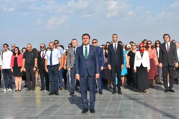 İzmir İl Milli Eğitim Müdürlüğü'nce 2022- 2023 eğitim ve öğretim yılı için Cumhuriyet Meydanı'nda tören düzenlendi. Törene İl Milli Eğitim Müdürü Murat Mücahit Yentür, kurum müdürleri, öğretmen ve öğrenciler katıldı. Saygı duruşunda bulunulması ve İstiklal Marşı'nın okunmasının ardından İl Milli Eğitim Müdürü Yentür, Atatürk Anıtı'na çelenk bıraktı. Daha sonra şeref defterini imzalayan Yentür, "2021-2022 eğitim ve öğretim yılında uyguladığımız projeleri gözden geçirerek, elde ettiğimiz birikim ve tecrübelerle 2022-2023 eğitim ve öğretim yılında uygulamaya koyacağımız yeni projeleri ve çalışmaları planlama fırsatı bulduk. Sevgili öğrenciler; gelecek, kendisini bugünden ona adayanlarındır. Vatanına, milletine, bayrağına bağlı, insan sevgisini her şeyin üzerinde tutan nesiller ülkemizin geleceğini aydınlatacaktır. Dersleriniz için göstereceğiniz çalışma azmi sonucunda kazanacağınız bilgi ve becerilerin bir üst öğretimde sizi başarılı kılacağını unutmayın" dedi.