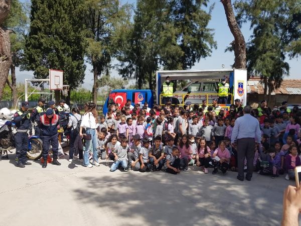 İZMİR'de jandarma ekipleri, emniyet kemerinin kullanımının önemine yönelik farkındalık için öğrencilere teorik ve uygulamalı trafik eğitim semineri verdi.