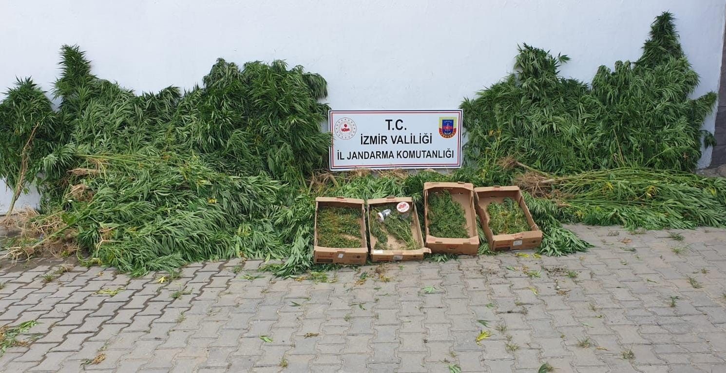 İzmir İl Jandarma Komutanlığı ekipleri, uyuşturucu madde ticareti ve kullanımının önlenmesi amacıyla 29 Haziran-6 Temmuz tarihleri arasında Beydağ, Bayındır, Bergama, Torbalı, Ödemiş, Kiraz, Kemalpaşa, Buca ve Seferihisar ilçelerinde operasyonlar gerçekleştirdi. İlçe Cumhuriyet Başsavcılıklarının koordinesinde Jandarma Narkotik Timleri tarafından narkotik köpekleri ile birlikte drone destekli gerçekleştirilen operasyonlarda, ormanlık alan içerisinde ekili toplam 2 bin 122 kök kenevir bitkisi, 100 gram kenevir tohumu, yaklaşık 1.8 kilogram kubar esrar, 18 gram metamfetamin ile 3 gram bonzai, 13 adet uyuşturucu hap ve 1 adet ruhsatsız av tüfeği ele geçirildi. Operasyonlarda 12 şüpheli gözaltına alınırken, şüphelilerin adli işlemlerinin sürdüğü bildirildi.