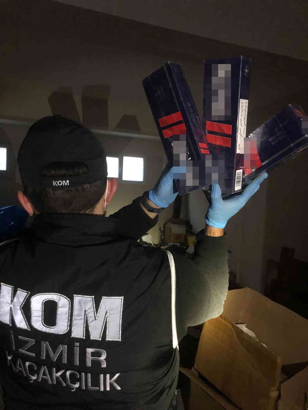 İzmir İl Emniyet Müdürlüğü Kaçakçılık Suçlarıyla Mücadele Şube Müdürlüğü ekipleri, kaçak ürün imalatı ve satışı yapıldığı bilgisi üzerine belirlenen adresleri takibe aldı. Ekipler, Buca, Karabağlar ve Konak ilçelerinde yapılan 3 farklı operasyonda 1 depo, 2 iş yeri ve 4 araçta arama gerçekleştirdi. Yapılan aramalarda 11 adet makaron, 11 bin adet içi doldurulmuş makaron, 3 bin paket gümrük kaçağı sigara, 1 adet silah, 2 bin 135 litre etil alkol olduğu değerlendirilen sıvı, 120 adet kapak, 3 bin 610 adet etiket, 569 adet gözlük ve 17 adet saat ele geçirildi.