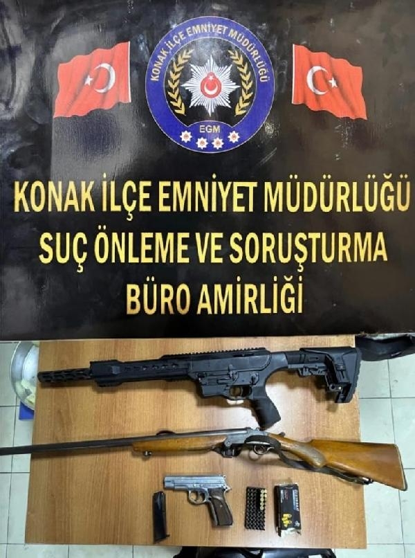 Konak İlçe Emniyet Müdürlüğü Suç Önleme ve Araştırma Büro Amirliği ekipleri, ilçedeki bazı şüphelilerin iki adreste kaçak silah ve mühimmat üretimi yaptığı istihbaratını aldı. Bunun üzerine adresleri teknik ve fizik takibe alan ekipler, gerekli delilleri topladıktan sonra eş zamanlı operasyon gerçekleştirdi. Adreslerde yapılan aramalarda, 8 ruhsatsız tabanca, 3 ruhsatsız tüfek, 7 farklı boyutlarda fişek, 11 kartuş, silah namlusu açmak için torna malzemeleri ve silah yapımında kullanılan demir boruların yanı sıra suçtan elde edildiği belirlenen 186 bin TL ele geçirildi. Operasyonda gözaltına alınan 5 şüpheli, emniyetteki işlemlerinin ardından adliyeye sevk edildi. Mahkemeye çıkartılan 5 şüpheliden 4'ü tutuklanırken, 1 kişi ise serbest bırakıldı. (DHA)