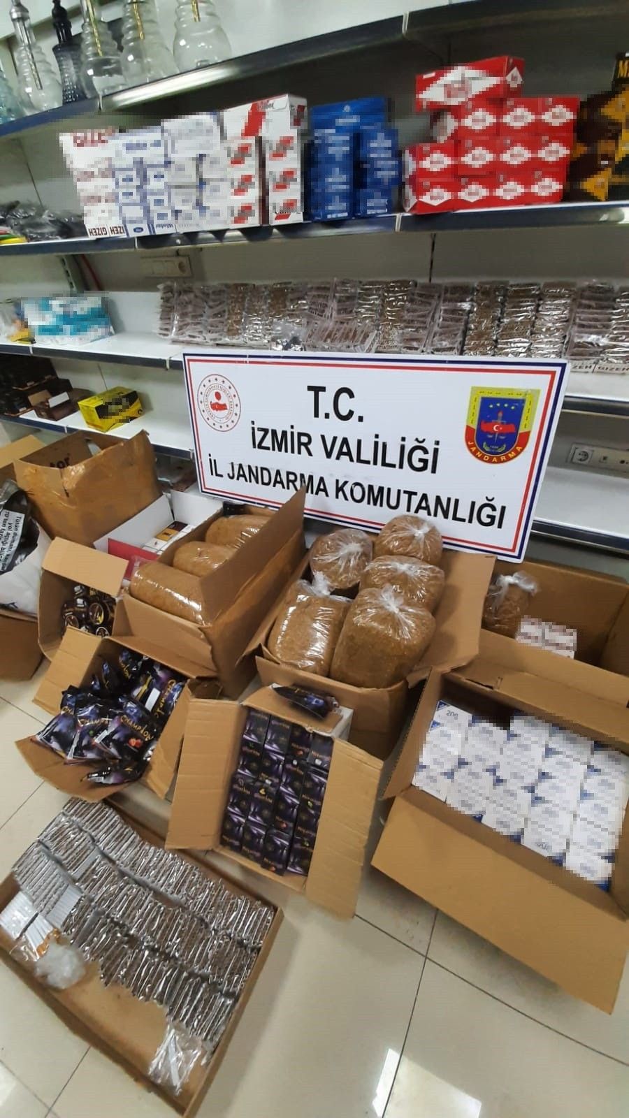 İzmir İl Jandarma Komutanlığı ekipleri, halk sağlığının korunması, her türlü kaçakçılığın ve kaçakçılıktan kaynaklanan vergi kaybının önlenmesi amacıyla Torbalı Cumhuriyet Başsavcılığı koordinesinde yürüttüğü istihbari çalışmalar neticesinde, Torbalı ilçesi Ayrancılar Mahallesinde bulunan ve kaçak tütün satıldığı tespit edilen bir iş yerine operasyon düzenledi. KOM Şube Müdürlüğü ve Ayrancılar jandarma Karakol Komutanlığı ekiplerinin düzenlediği operasyonda yapılan aramalarda, 7 bin 791 adet bandrolsüz içi doldurulmuş makaron (sigara), 47 bin 800 adet boş bandrolsüz makaron, 84 kilogram bandrolsüz kıyılmış tütün, 27 kilogram nargile tütünü, 153 bin 180 adet bandrolsüz sigara sarma kağıdı ve 14 adet TAPDK bandrolü ele geçirildi. Operasyonda 1 şüpheli hakkında yasal işlem başlatıldı.