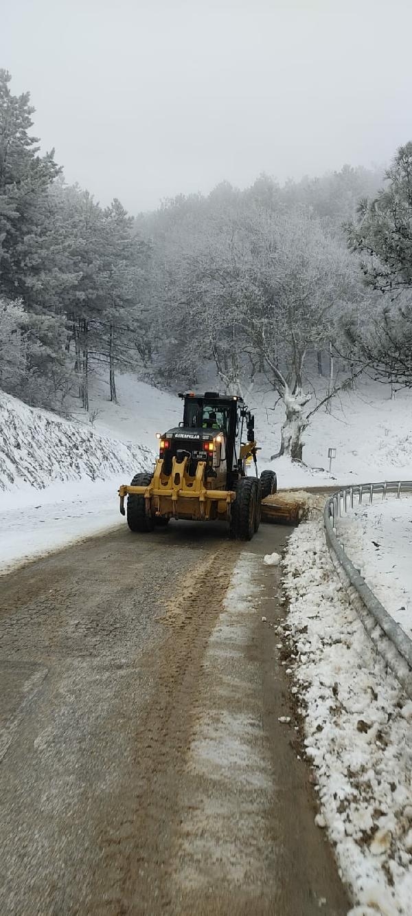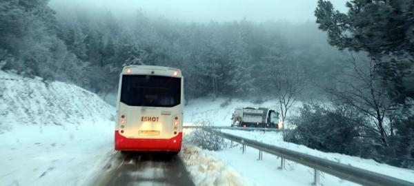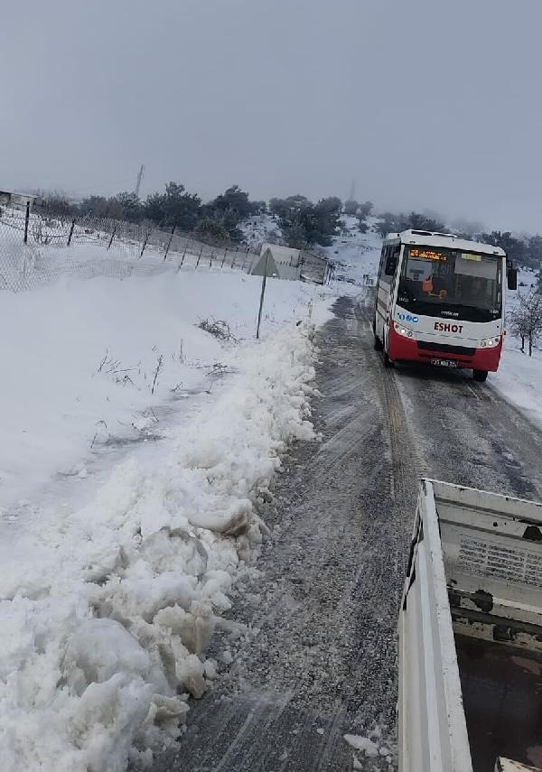 İZMİR Büyükşehir Belediyesi ekipleri, kentin yüksek kesimlerinde etkili olan kar yağışı nedeniyle yol açma ve tuzlama çalışmaları yaptı.