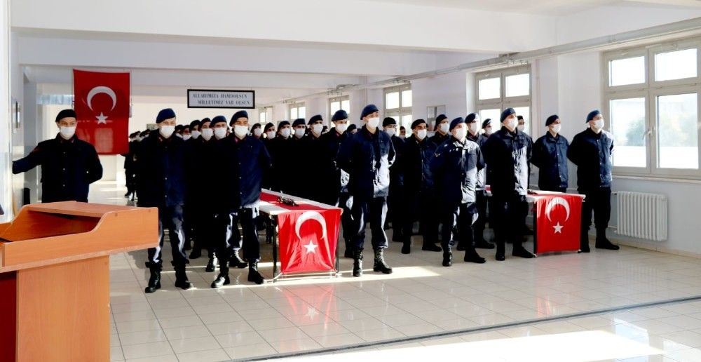 İzmir İl Jandarma Komutanlığına bağlı Aliağa Cezaevi Jandarma Tabur Komutanlığında kısa dönem olarak temel acemilik eğitimini tamamlayan 70 er için yemin töreni düzenlendi.