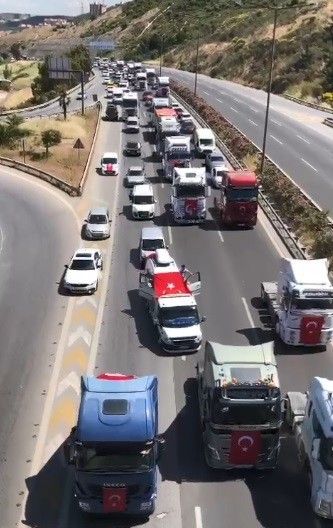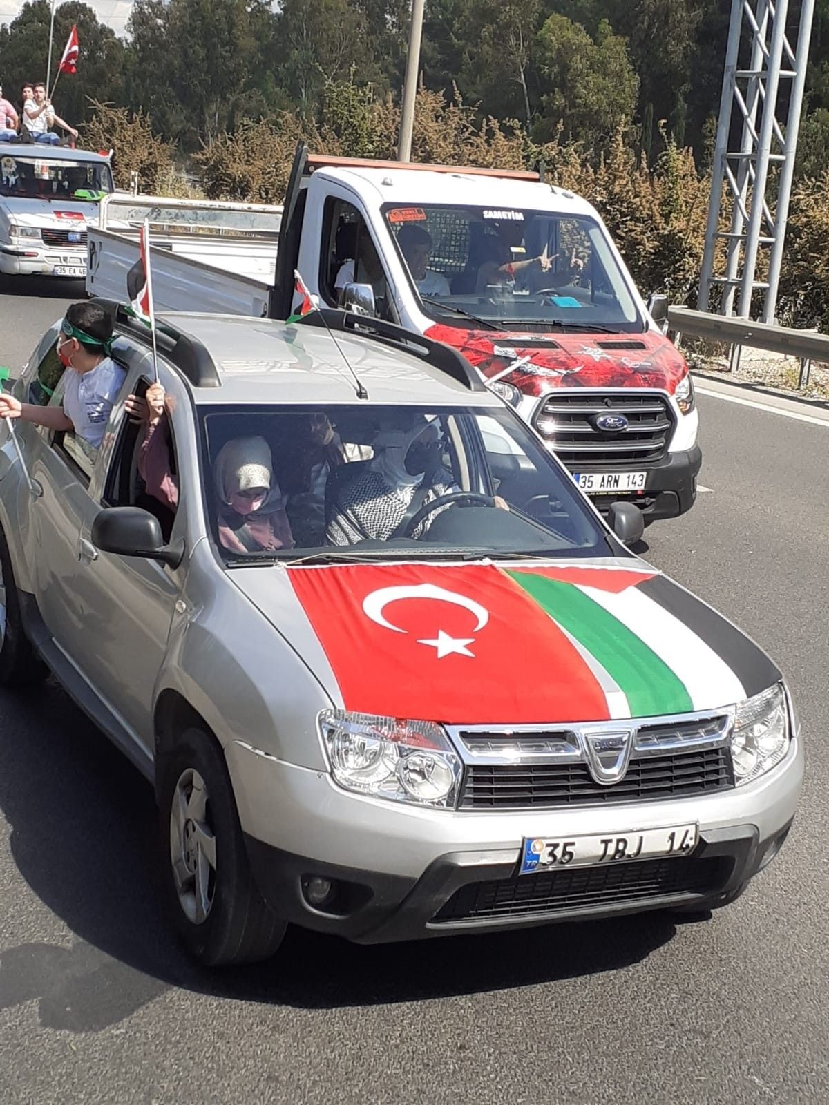 İsrail'in Filistin'e yönelik saldırılarına tepkiler dinmek bilmiyor. İzmir'de de çok sayıda vatandaş, Filistin'e destek olmak ve saldırıları protesto etmek için düzenlenen konvoyda bir araya geldi. Konvoydan önce Filistin halkı için dualar edildi, konuşmalar yapıldı. Konuşmaların ardından konvoy, Karabağlar ilçesi Eskiizmir Pazaryeri'nden hareket etti. Yüzlerce aracın yer aldığı konvoy sırasında İsrail'in saldırılarına tepki gösterildi. Konvoyda kornalara basan sürücüler; Balçova Çevreyolu üzerinden, Konak Sahil Yolu'nu geçerek yeniden başladığı yere döndü.