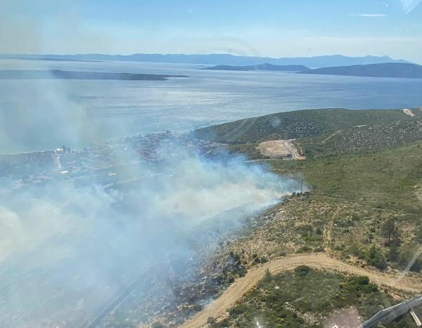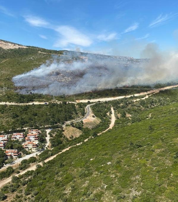 İZMİR'in Karaburun ile Dikili ilçelerindeki makilik ve ormanda yangın çıktı. Ekipler, yangınları söndürmek için müdahale ediyor.