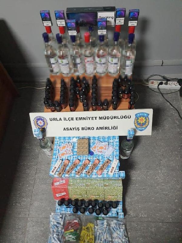 İZMİR'in Urla ilçesinde bir markete yapılan baskında 6 paket kaçak sigara, 16 litre etil alkol ve 195 paket sigara sarma kağıdı ele geçirildi. ...