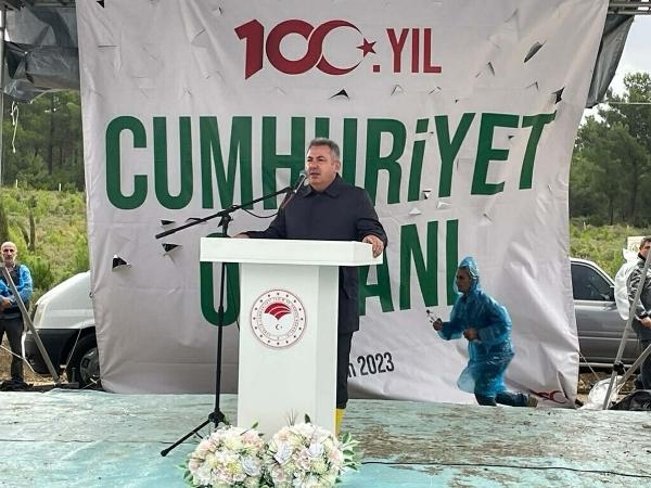 Etkinlikte konuşan İzmir Orman Bölge Müdürü Zafer Derince de 25 dekar alanda yaklaşık 5 bin adet mavi ve kara servi, fıstık çamı ve çam fidanının toprakla buluşturulacağını söyledi. Konuşmaların ardından katılımcılar tarafından fidanlar toprakla buluşturulup, can suları verildi.