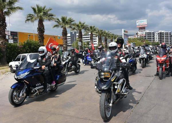 İzmir Motosiklet Kulübü öncülüğünde ve Ege Motosiklet Grubu katkılarıyla yüzlerce motosiklet tutkunu, 19 Mayıs Atatürk'ü Anma Gençlik ve Spor Bayramı için bir araya geldi. Çiğli Ataşehir Mahallesi Yeni Havaalanı Caddesi'nde bir araya gelen 500'e yakın motosikletli ellerinde ve motosikletlerindeki Türk bayraklarıyla şehir turu attı. Topluluk adına konuşan İzmir Motosiklet Kulübü Başkanı Emin Melih Çırpar, "Her milli bayramda bunu yapıyoruz. Bugün de 19 Mayıs. Büyük bir coşkuyla tüm kardeşlerimizle geldik, 500'e yakın bir motorcunun katılımı var. Milli bayramlarımız coşkulu geçiyor. Bayraklarımızla beraber bu coşkuyu yaşayacağız" dedi.