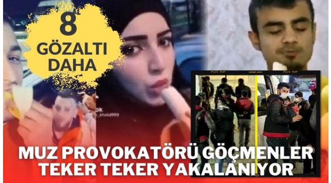 İzmir Emniyet Müdürlüğü Güvenlik Şube Müdürlüğü ekipleri, bir sokak röportajında yer alan 'Ben muz yiyemiyorum, siz kilolarca muz alıyorsunuz' sözleri sonrası 8 Suriyelinin sosyal medyadan provokatif paylaşımda bulunduklarını belirledi. Ekipler, 29 Ekim'de 1'i yaşı küçük olmak üzere 8 kişiyi yakaladı. Yaşı küçük şüpheli, Çocuk Şube Müdürlüğü’ne teslim edildi.