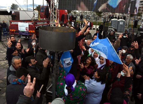 Etkinlikte konuşan HDP İzmir Milletvekili Murat Çepni, "Nevruz alanları; işçilerin, emekçilerin, özgürlük isteyenlerin alanlarıdır. Nevruz, kutlu olsun. Nevruz, direniş ve özgürlüktür. Bugün HDP olarak demokrasi güçleri olarak tüm özgürlük taleplerini meydanlarda buluşturuyoruz. Bizi susturmaya çalışanlar; bu meydanlara, 8 Mart meydanlarına, 1 Mayıs meydanlarına baksınlar. Bu meydanlarda özgürlüğü, kararlılığı, cesareti görecekler; bu onlara dert olsun" dedi. (DHA)