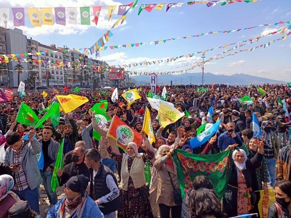 Halkların Demokratik Partisi (HDP), Emek Partisi (EMEP), Türkiye İşçi Partisi (TİP), Halkların Demokratik Kongresi (HDK), Demokratik Bölgeler Partisi'nin (DBP) bir araya gelip, oluşturduğu İzmir Nevruz Örgütleme Komisyonu öncülüğünde Gündoğdu Meydanı'nda nevruz kutlandı. HDP il binasına geçen yıl 17 Haziran'da düzenlenen silahlı saldırıda öldürülen Deniz Poyraz'ın ailesi, nevruz ateşini yaktı. Ateşin üzerinden atlayan çok sayıda kişi, halay çekti.