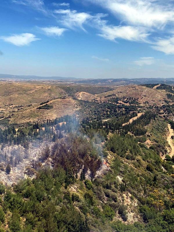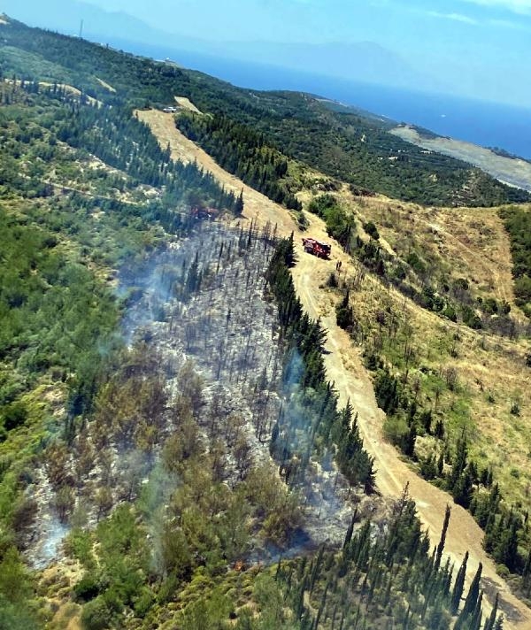 İZMİR'in Seferihisar ilçesindeki ormanda, henüz belirlenemeyen nedenle yangın çıktı. Ekiplerin alevlere havadan ve karadan müdahalesi sürüyor.