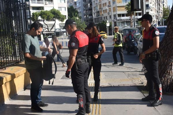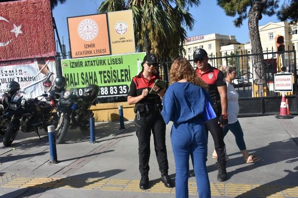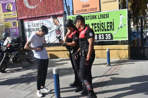 İzmir'de, yeni eğitim-öğretim yılının başlamasıyla polis ekipleri, okul önlerinde ve çevresinde denetim gerçekleştirdi.