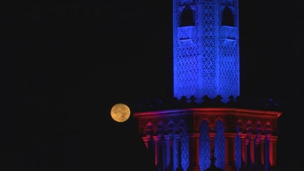 Dünyanın birçok yerinde 30 Ağustos gecesi görülmeye başlayan 'Mavi Ay', İzmir'in simgelerinden Saat Kulesi ile birlikte görsel şölene sahne oldu.