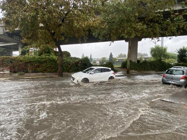 İzmir'de sağanak etkili oldu, cadde ve sokaklar su ile doldu; yaya ve sürücüler zor anlar yaşadı.