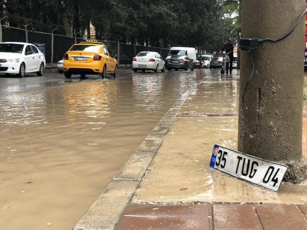 Öte yandan Buca'daki oto galericilerin bulunduğu Otokent Sitesi önündeki yol da yağmur sularıyla doldu. Sürücüler suyla dolu yoldan geçerken zor anlar yaşadı.