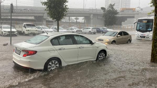 İZMİR'de etkili olan sağanak nedeniyle cadde ve sokaklarda su birikintileri oluştu, sürücüler zor anlar yaşadı.