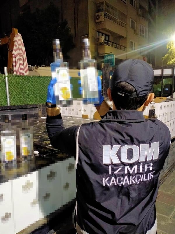 İl Emniyet Müdürlüğü Kaçakçılık Suçlarıyla Mücadele Şube Müdürlüğü ekipleri ve Konak İlçe Emniyet Müdürlüğü ekipleri, sahte alkol imalatı yapıldığı bilgisi üzerine harekete geçti. Karşıyaka, Konak ve Karabağlar ilçelerinde 4 araç, 1 depo ve 1 iş yerinde yapılan aramalarda; 1600 şişe fotokopi TAPDK bandrollü sahte içki, 800 litre sahte etil alkol, 1843 taklit etil alkol etiketi, 300 boş etil alkol kolisi ve 115 içki aroması ele geçirildi. Operasyon kapsamında, 11 şüpheli hakkında adli işlem başlatıldı.