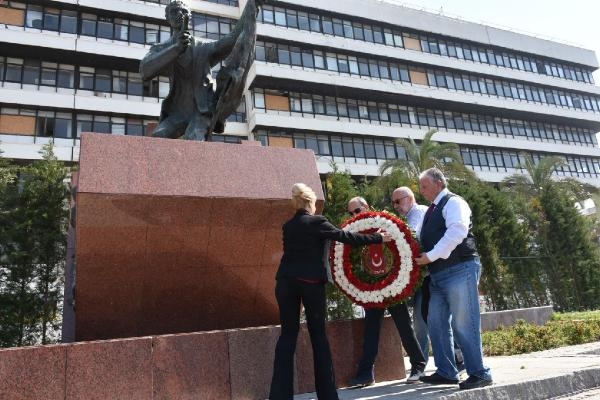İzmir'in işgali sırasında düşmana ilk kurşunu atan gazeteci Hasan Tahsin, şehit edilişinin 103'üncü yılında, anıtı önünde meslektaşları tarafından anıldı.