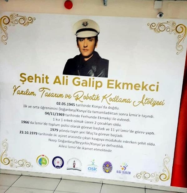 İzmir İl Emniyet Müdürlüğü Çocuk Şube Müdürlüğü'nce Karabağlar 29 Ekim Ortaokulu'nda yaptırılan ve şehit polis memuru Ali Galip Ekmekçi'nin isminin verildiği robotik kodlama sınıfının açılışı yapıldı. İzmir Valisi Yavuz Selim Köşger, İzmir İl Emniyet Müdürü Mehmet Şahne, Karabağlar Kaymakamı Cemil Özgür Öneği, şehit polis memuru Ali Galip Ekmekçi'nin eşi Ferhunde Ekmekçi ve kızı Meral Duman'ın katılımıyla yapılan törende şehit eşi Ferhunde Ekmekçi duygusal anlar yaşadı. Açılış kurdelesinin kesimi sonrasında robotik kodlama sınıfını gezen İzmir Valisi Köşger ve beraberindekiler, öğrencilerden yaptıkları çalışmalar hakkında bilgi aldı. Robotik kodlama sınıfının açılışı sonrasında, İzmir Asayiş Şube Müdürlüğü Motorize Yunus Timleri ile Köpek Eğitim Merkezi polis köpeklerinin gösterileri, öğrencilere keyifli anlar yaşattı.