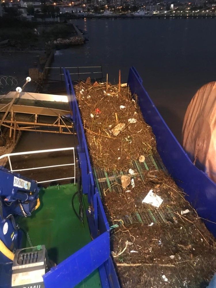 Önceki gece sabaha kadar yağan aşırı yağmurun ardından İzmir Büyükşehir Belediyesi ekipleri kentte yaşamı normale döndürmeye yönelik çalışmalarını sürdürürken, körfezden de 25 ton çöp toplandı.