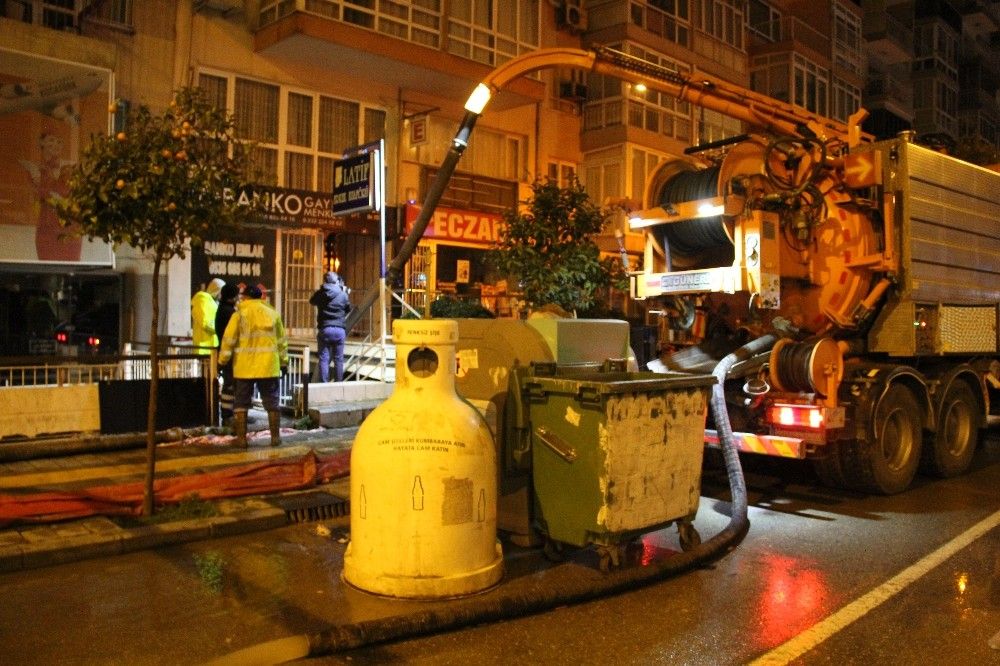 İzmir'de meydana gelen selin ardından sular çekilmeye başlarken, selin izlerini temizlemek için yapılan çalışmalar da gece boyunca devam etti.
