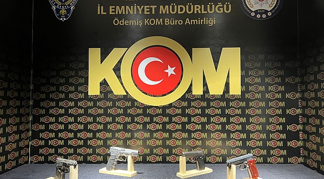 İzmir Organize Suçlarla Mücadele Şube Müdürlüğü Ödemiş Büro Amirliği ekipleri, ilçede 3 şüphelinin yasa dışı silah ticareti yaptığının belirlenmesi üzerine harekete geçti. Ödemiş Cumhuriyet Başsavcılığının koordinesinde, E.O., Ş.A. ve M.Ö. adlı 3 şüphelinin adreslerine gerçekleştirilen baskınlarda, 4 ruhsatsız tabanca ve şarjörü ile 300 tabanca fişeği ele geçirildi.