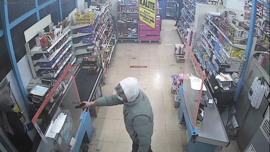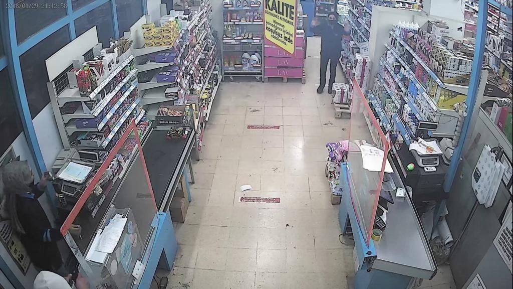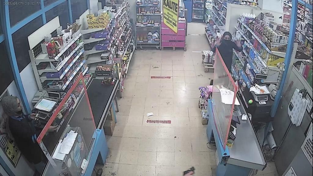 Öte yandan, marketteki soygun anları saniye saniye kameralara yansıdı. Görüntülerde C.M.Ş, alışveriş yapma bahanesiyle markete geliyor geliyor ve silahla soyguna girişiyor. Kasiyerlerin korku ve panik anları da kameraya yansıyor.