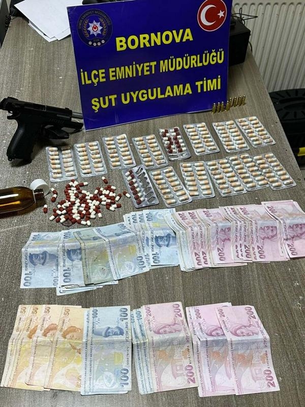 Bornova İlçe Emniyet Müdürlüğü bünyesindeki Şok Uygulama Timi (ŞUT), sokakta uyuşturucu satan kişilere yönelik 4 ayrı denetim yaptı. Denetimlerde 400 gram metamfetamin, 300 adet sentetik ecza hap, 12 meşe satışa hazır hale getirilmiş kokain, 3 meşe esrar ve 3 meşe metamfetamin maddesi, ruhsatsız 4 tabanca ele geçirildi. Olaylarla ilgili gözaltına alınan T.Ş., S.D. ve H.Ü. sevk edildiği adliyede tutuklandı.(DHA)