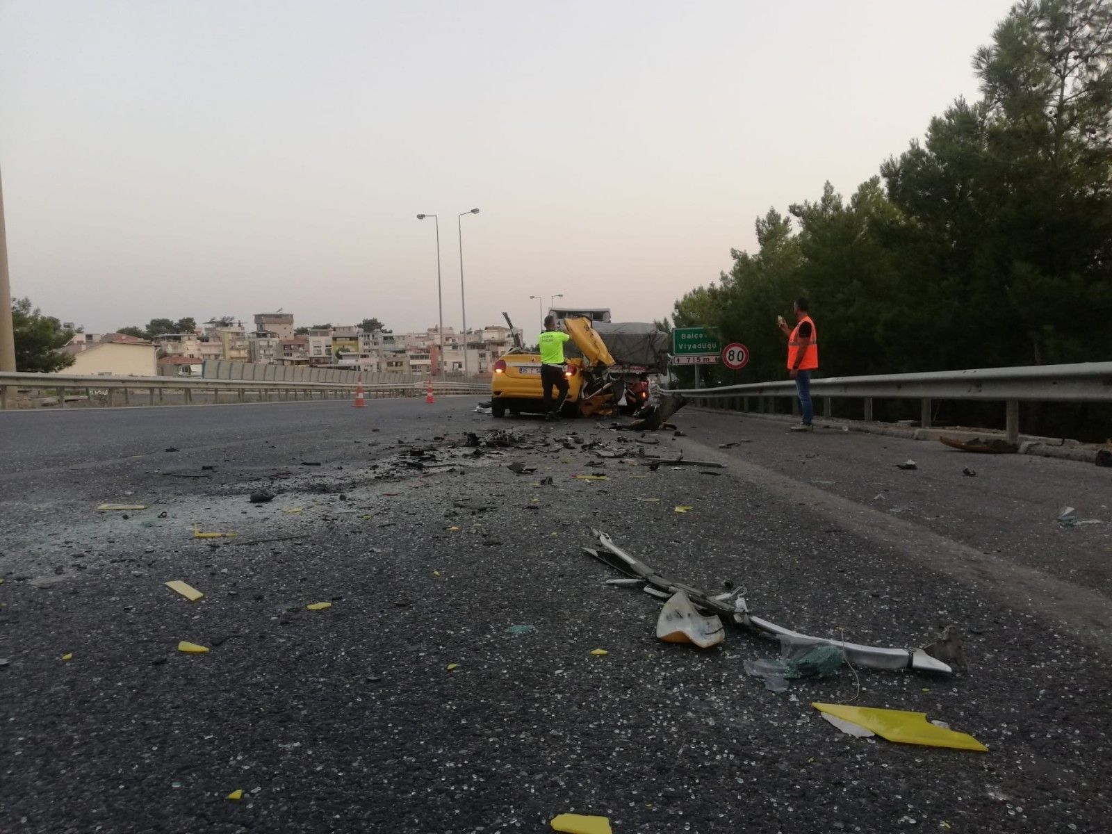 İzmir'in Balçova ilçesinde, ticari taksi aynı istikamete gitmekte olan tıra arkadan çarptı. Taksinin hurdaya döndüğü kazada 1 kişi öldü, 2 kişi ise ağır yaralandı.