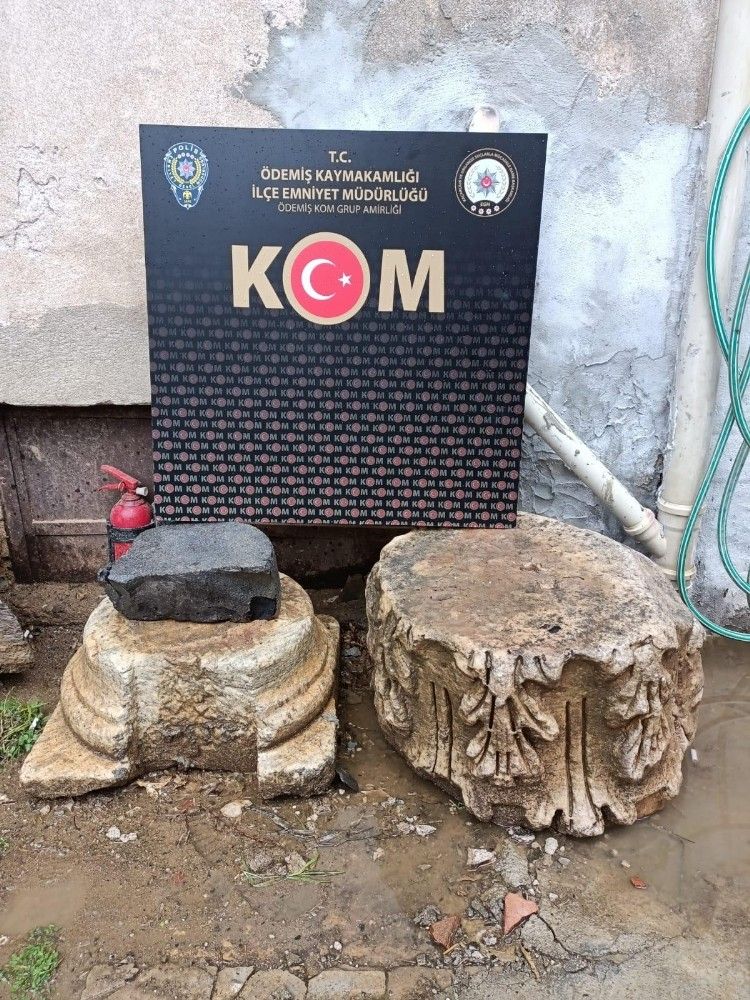 Ödemiş İlçe Emniyet Müdürlüğü Kaçakçılık ve Organize Suçlarla Mücadele (KOM) Grup Amirliği ekipleri, ilçede bulunan bir evde tarihi eser bulundurulduğuna yönelik aldığı bilgi üzerine çalışma başlattı. Önceden belirlenen adrese yapılan operasyonda tarihi eser olduğu değerlendirilen 2 adet tarihi sütun, kayide, Kurtuluş Savaşı'ndan kalma tüfeklerin yanı sıra Osmanlıca ve Yunanca kitaplar ile sandık ele geçirildi.