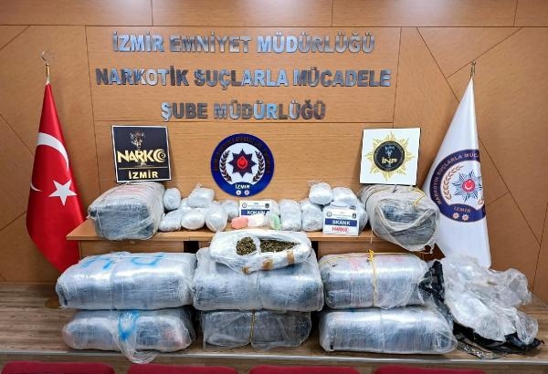İzmir İl Emniyet Müdürlüğü Narkotik Suçlarla Mücadele Şube Müdürlüğü ekipleri, 'torbacı' olarak tabir edilen sokak satıcılarını tespit ettikten sonra takibe başladı. Yaklaşık 1 ay süren teknik ve fiziki takibin ardından ekipler, belirlenen bir adrese dün operasyon düzenledi. Narkotik köpeği Rex'in de katıldığı aramalarda, toprağa gömülü ve dağıtıma hazır hale getirilmiş 220 kilo esrar, 1 kilo 548 gram kokain ve bir hassas terazi ele geçirildi. Operasyonda M.K. (32 ), A.K. (49), R.B. (20), S.B.(30) ve H.B. (18) gözaltına alındı. Şüpheliler sorgulanmak üzere emniyete götürüldü. (DHA)