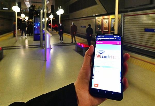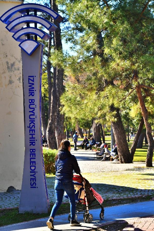 İzmir Büyükşehir Belediyesi, 78 adet park ve meydan, 7 iskele, 20 vapur, 60 otobüs, 78 köy, 16 metro istasyonu, 41 tramvay ve 23 aktarma merkezinde ücretsiz internet hizmeti veriyor. (DHA)