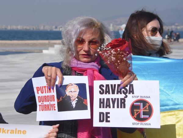 Rusya'nın, Ukrayna'ya başlattığı askeri harekata tepkiler devam ediyor. İzmir Ukraynalılar Derneği'nin girişimleriyle Gündoğdu Meydanı'nda toplanan yaklaşık 40 kadar Ukraynalı, savaşın bir an önce bitirilmesi çağrısında bulunurken, sözlerini tutmadıkları gerekçesiyle ABD ve Avrupa ülkelerine de tepki gösterdi. Ellerinde döviz ve pankartlarla meydana gelen Ukraynalılar, sık sık savaş aleyhine sloganlar attı, bu sırada bazılarının gözyaşlarına hakim olamadıkları görüldü.