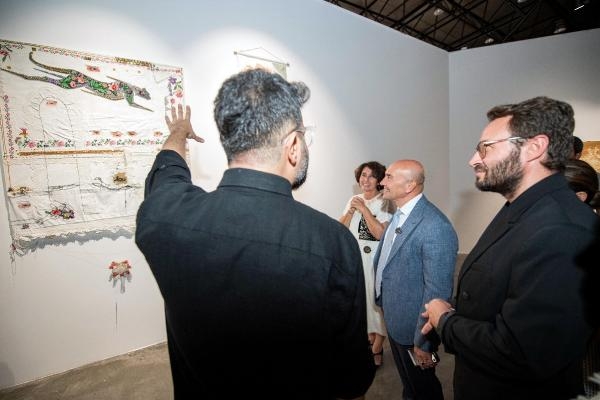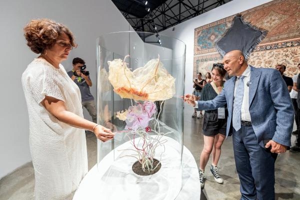 Uluslararası Tekstil Bienali için Kültürpark Fuar Alanı'ndaki Atlas Pavyonu'nda açılış töreni düzenlendi. Küratörlüğünü sanatçı Nihat Özdal'ın yaptığı Uluslararası Tekstil Bienali'nin açılış törenine İzmir Büyükşehir Belediye Başkanı Tunç Soyer'in eşi Neptün Soyer, Büyükşehir Belediyesi bürokratları, sanatçılar ve sanatseverler katıldı. Soyer, eşi Neptün Soyer ile birlikte sergilenen eserleri inceleyerek sanatçılardan bilgi aldı. 24 Kasım'a kadar açık olacak sergilerde, 17 farklı ülkeden 57 katılımcı yer aldı. Eserler Kültürpark'taki Atlas Pavyonu ve Pakistan Pavyonu'nun yanı sıra Kemeraltı'nda Agora Antik Kenti, Etz Haim Sinagogu ve Alga Çikolata Fabrikası'nda da sanatseverlerle buluşacak.