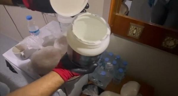 İzmir'in Menderes ilçesinde uyuşturucu imalathanesi olarak kullanılan bir adrese düzenlenen operasyonda 9 kilo 320 gram metamfetamin ele geçirildi. Gözaltına alınan 2 kişi tutuklandı.