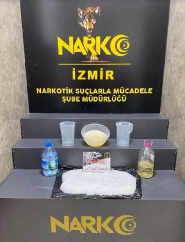 İZMİR'in Konak ilçesindeki bir eve yapılan operasyonda, 5 kilo 450 gram metamfetamin ile 2 kilo 250 gram sıvı metamfetamin ele geçirildi. Uyuşturucuyla ilgili gözaltına alınan yabancı uyruklu 4 şüpheliden 2'si tutuklandı.