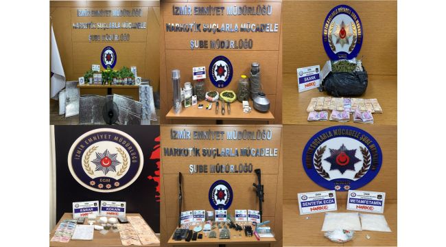 İzmir'de 3 hafta içerisinde polis ekipleri tarafından gerçekleştirilen operasyonlarda çok sayıda uyuşturucu madde ele geçirilirken, 146 şüpheli hakkında işlem yapıldı. Ekipler tarafından operasyonlarda gözaltına alınan şüphelilerden 51'i tutuklanırken, 34 şüpheli adli kontrol şartıyla serbest bırakıldı.