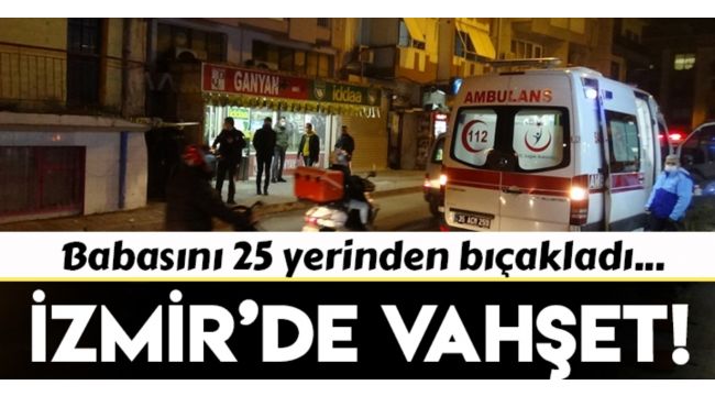 İzmir'in Karabağlar ilçesinde psikolojik sorunları olduğu iddia edilen bir kişi, babasını 25 yerinden bıçaklayarak öldürdü. Cinayet zanlısı daha sonra karakola giderek suçunu itiraf etti.