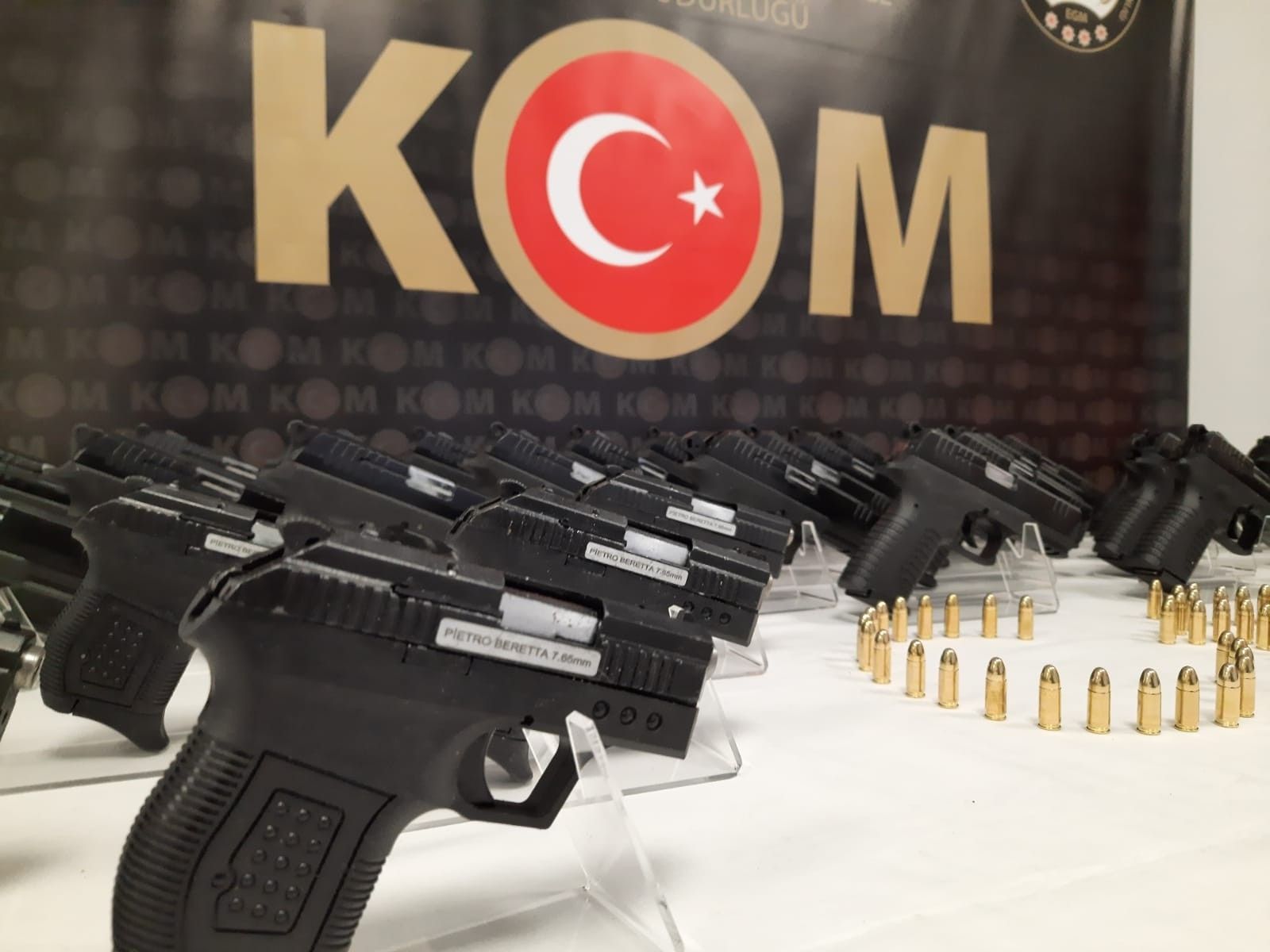 İzmir İl Emniyet Müdürlüğü Organize Suçlarla Mücadele Şube Müdürlüğü ekipleri, Konya'nın Beyşehir ilçesinden İzmir'e, bir kamyonet içerisinde yasa dışı ticareti yapılmak üzere çok sayıda ruhsatsız silah taşındığına yönelik bilgi üzerine çalışma başlattı. Harekete geçen ekipler, Emniyet Genel Müdürlüğünün PTS (Plaka Tespit Sistemi) aracılığıyla tespit ettiği kamyoneti dün akşam saat 22.53'te İzmir girişi otoyol üzerinde durdurdu. Ekipler tarafından araçta yapılan aramada 40 adet 9 mm çaplı tabanca, 20 adet 7.65 mm çaplı tabanca, 60 adet tabanca şarjörü ile 50 adet 9 mm çaplı fişek ele geçirildi.