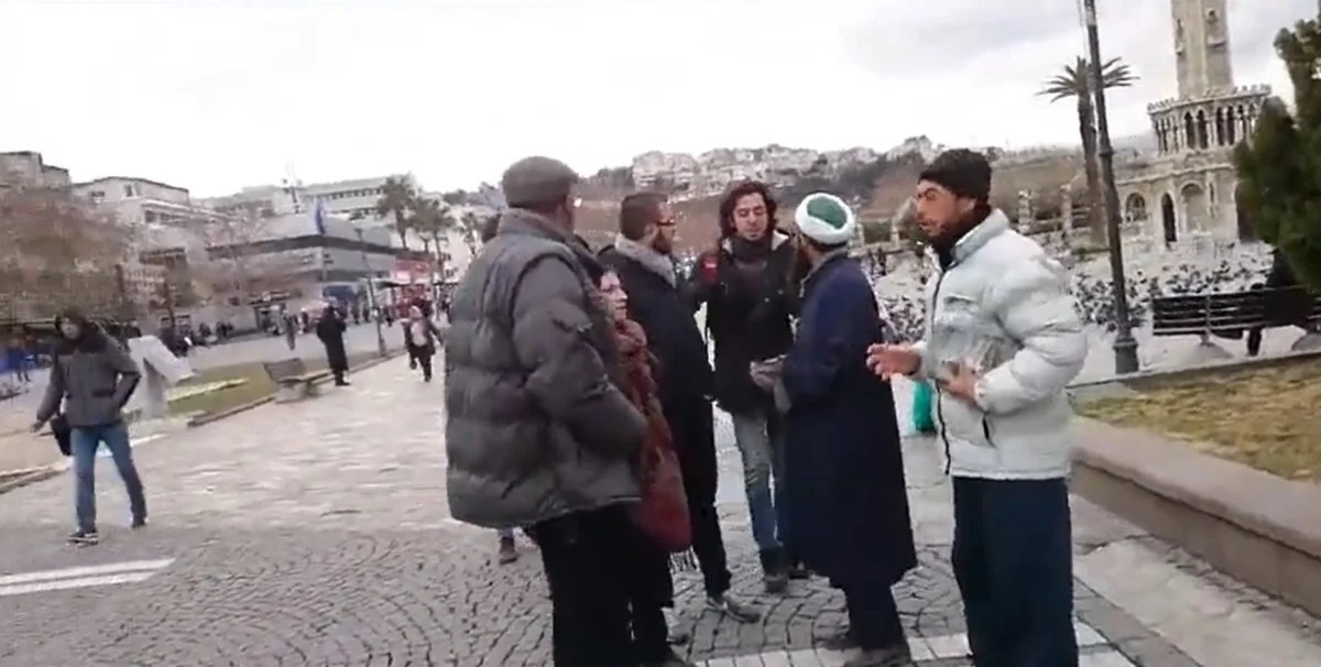 Sosyal medyayı ikiye ayıran konu, 5 yıl öncesini akıllara getirdi. İzmir'in Konak Meydanı'nda bir araya gelen grup, yoldan geçen vatandaşlara yeni yıl kutlamalarının haram olduğunu içeren bir bildiri dağıttı.