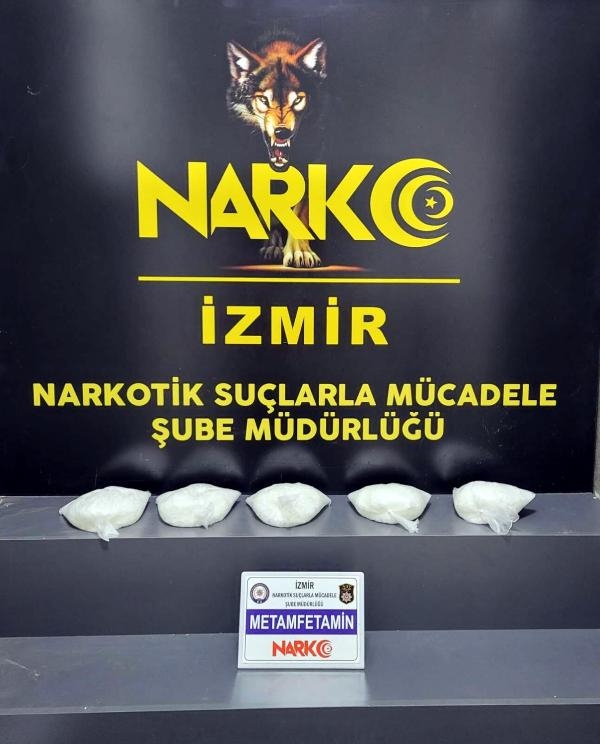 İzmir Emniyet Müdürlüğü'ne bağlı Narkotik Suçlarla Mücadele Şube Müdürlüğü ekipleri, kente yüklü miktarda uyuşturucu madde getirileceği bilgisi üzerine harekete geçti. Kemalpaşa ilçesinde önlem alan ekipler, S.N. (29) yönetimindeki motosikleti durdurdu. Özel eğitimli narkotik köpeğiyle hem motosiklette hem de S.N.'nin üst aramasında 5 kilo 20 gram metamfetamin ele geçirildi. S.N., gözaltına alındı. İşlemleri sonrası adliyeye sevk edilen S.N., çıkarıldığı hakimlikçe tutuklandı.