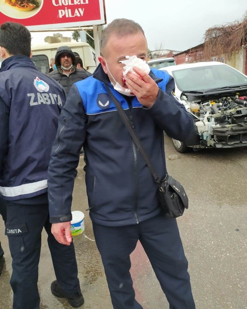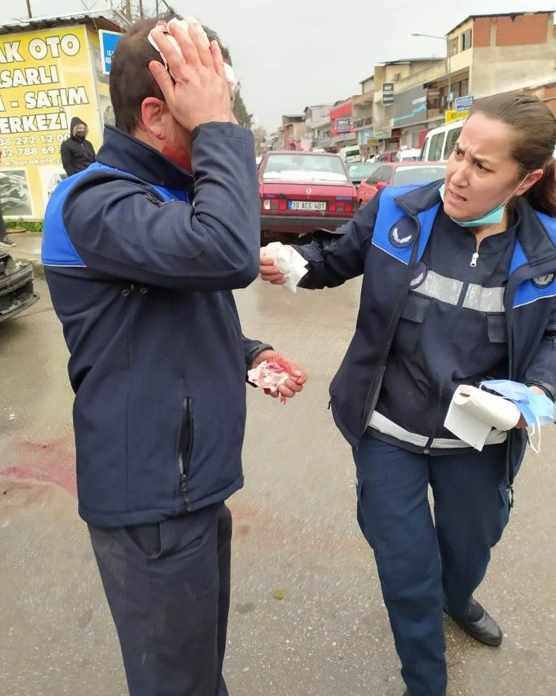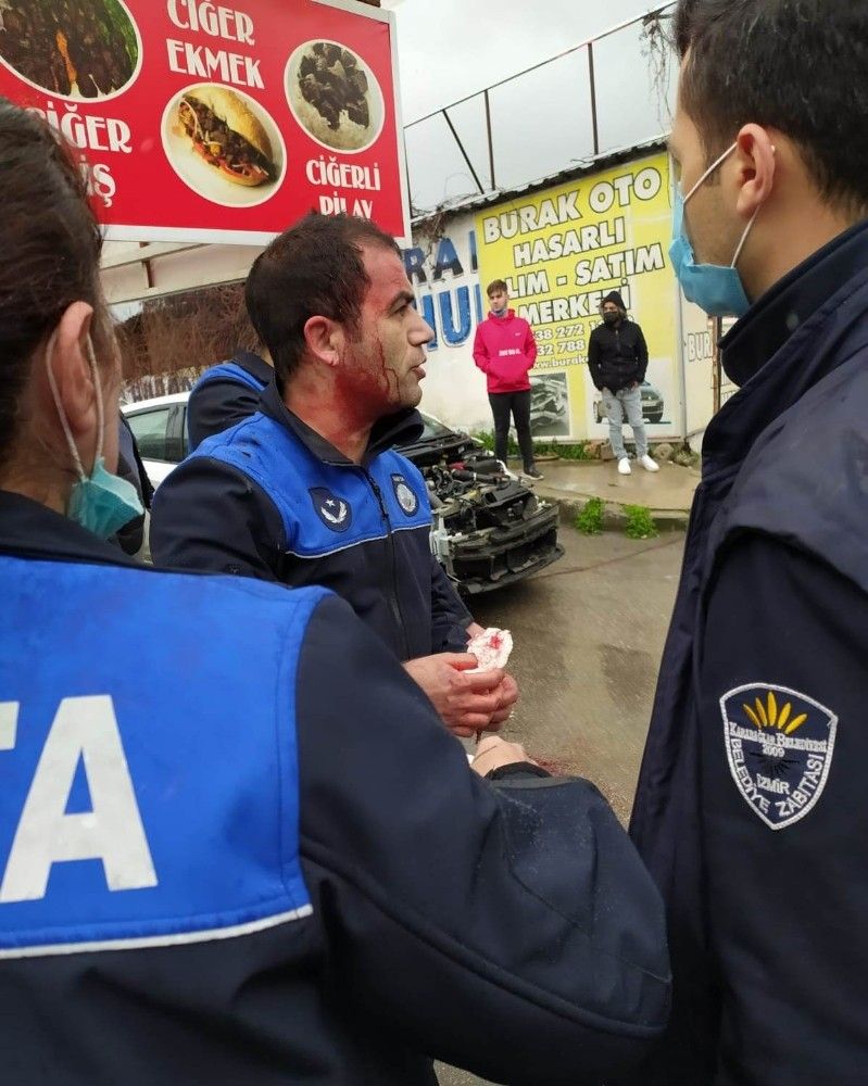 Durumun bildirilmesi üzerine, olay yerine polis ve sağlık ekibi sevk edildi. Yaralılar, 112 acil servis ekiplerince Bozyaka Eğitim ve Araştırma Hastanesine kaldırıldı. 1 zabıta memuru başından yaralanırken 1'inin burnu, 1'inin ise kolu kırıldı. Yaralıların hayati tehlikesinin bulunmadığı öğrenildi.