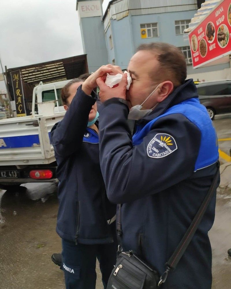 Karabağlar Belediyesinde görevli zabıta memurları, sanayi sitesinde minibüslerde gıda ürünü satan kişilere yönelik denetim yaptı. Ekipler, minibüslerin önüne konulan tente, masa ve sandalyeleri kaldırmak istediği sırada tartışma çıktı. Tartışmayı gören çevredekiler de olaya müdahale etmek istedi. Kavgaya dönüşen tartışmada, demir sopa ve sandalyelerle saldırıya uğrayan 3 zabıta görevlisi yaralandı.